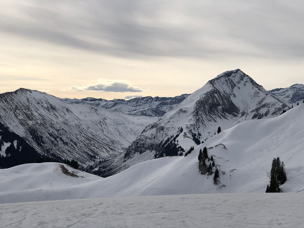 The scenery was pretty, as it is everywhere in Switzerland, but not as dramatic. Due to the warm temperatures, the snow was soft and sticky. It became apparent pretty quickly that some weather was coming in.