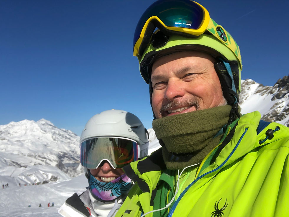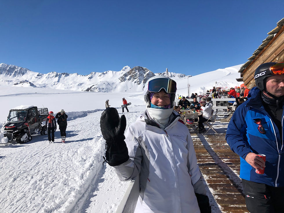 We arrived in Val d'Isere on Tuesday. Finally, on Friday, we had a bluebird day for skiing! YEA! We can see! Skiing by braille is challenging. Skiing when you can actually see is fun!