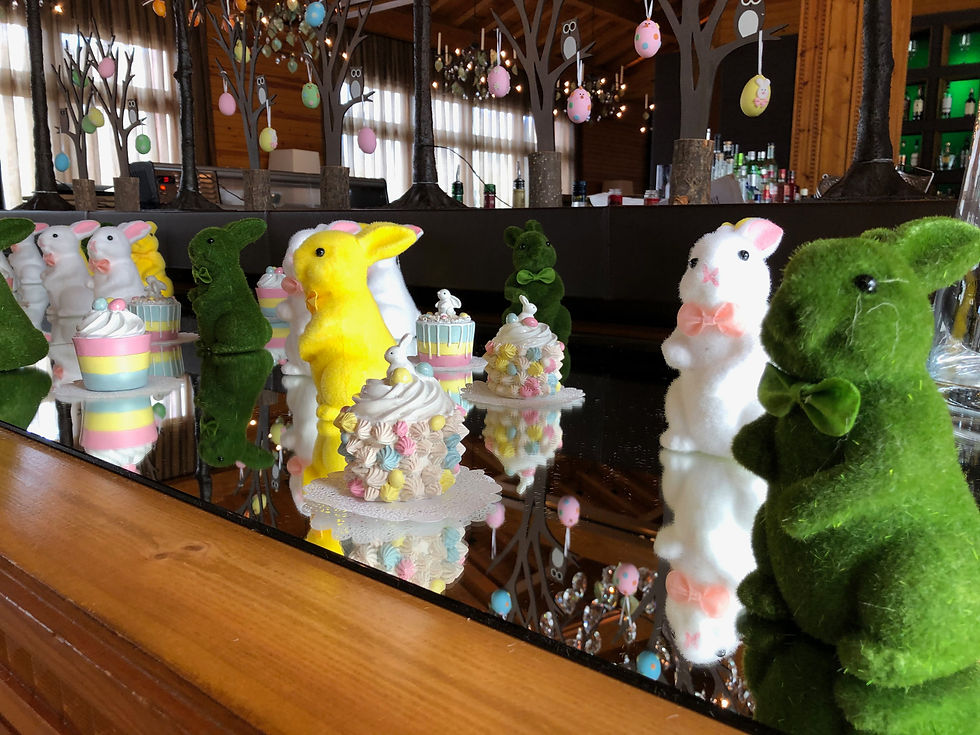 As we returned to our hotel, we walked through the "Glass Bar" and noticed that they put out some cute Easter decorations. The decorations are sitting on top of mirrors, which makes for an interesting effect.