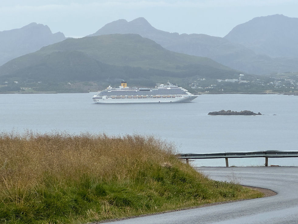 The ship arrived in Leknes around 7:00 a.m. However, before we arrived in port, I was out on the balcony admiring the scenery...